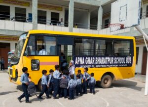 EDUCATION could be game changer for these children therefor initially these children were being sent to different public schools of Bharatpur. But the educational expenses including school fee, transportation etc. was mounting as the number of school going children is more than 150. Keeping this in focus, the organization has taken first step by establishing a school up to the 8th Standard for these children. In this day boarding school of Apna Ghar, there is a proper arrangement for the education of the children of the ashram as well as the children of the ashram staff. Along with classrooms, School has arrangements for Computer Lab, Smart Classes, Bedding arrangement for children of junior classes, Playgrounds, Sports Equipments, Library, Activity Hall, Pantry, Dining Hall etc. For providing better education 13 teachers are deputed in the school on 209 students. The facility of the school buses for these children is also available. Different activities like music, dance, drama, games etc. are also conducted for the students on regular basis in the school.